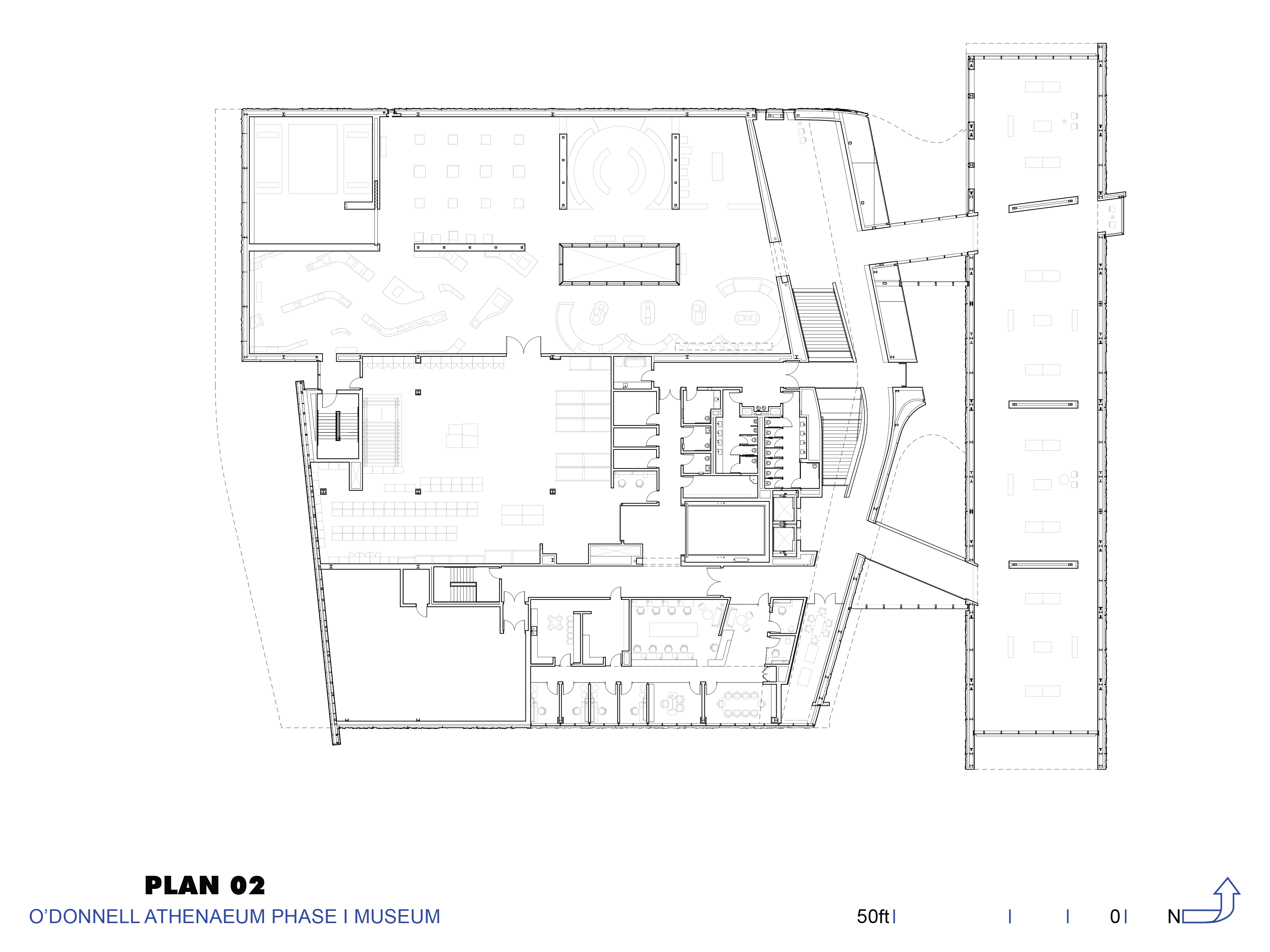 The Phase I Museum, the first completed building in the Athenaeum, was designed with the Crow Museum of Asian Art collection and other key collections in mind, as well as spaces for studying, discussing, and debating art and ideas. Exhibition galleries float above a smaller first floor of seminar rooms, study rooms, lobby, and reading room, connected to the plaza through large windows.