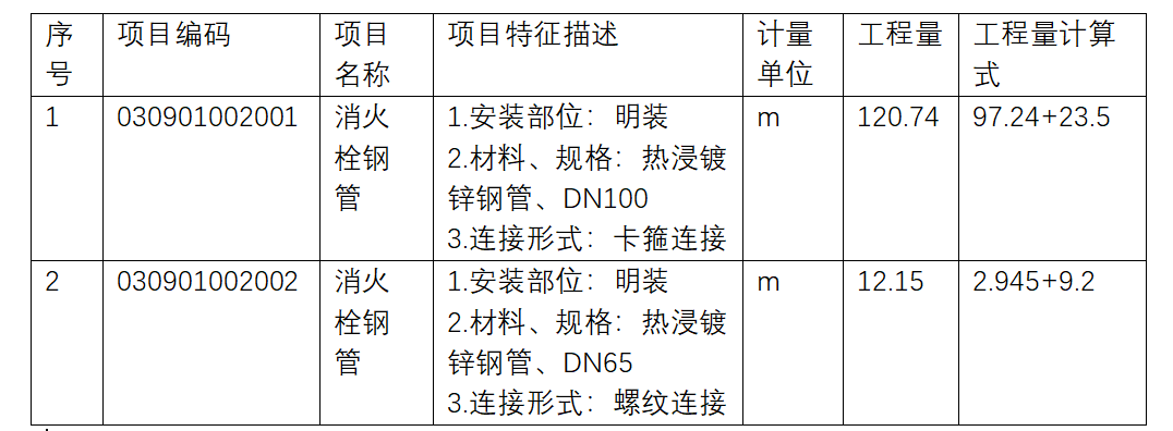 1.工程量计算:消火栓钢管按设计图示管道中心线以长度计算,不扣除阀门、管件及各种组件所占长度以延长米计算。