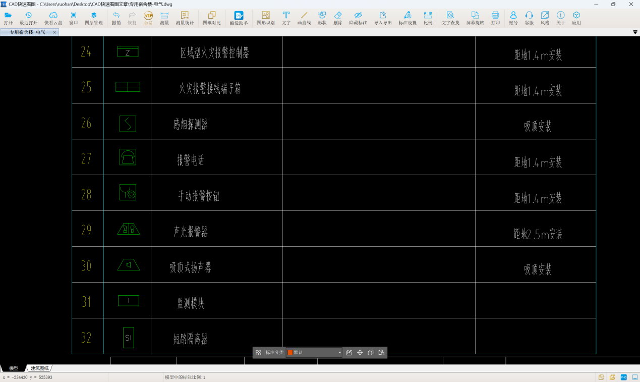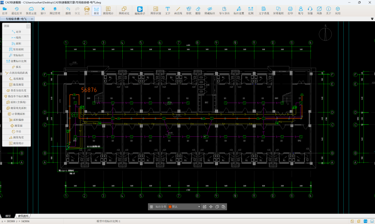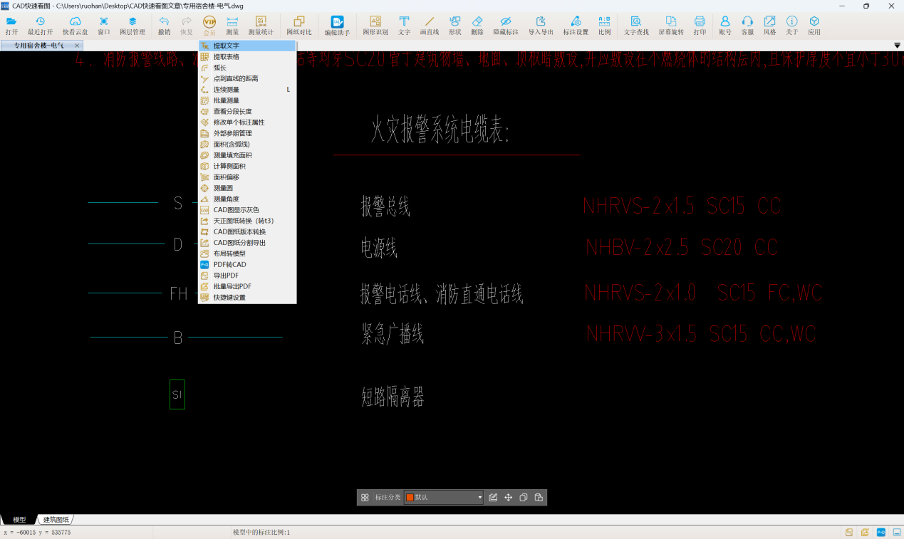 消防系统图纸上电缆长度计算可以直接用CAD快速看图的批量测量计算长度,效率提升,不漏项。