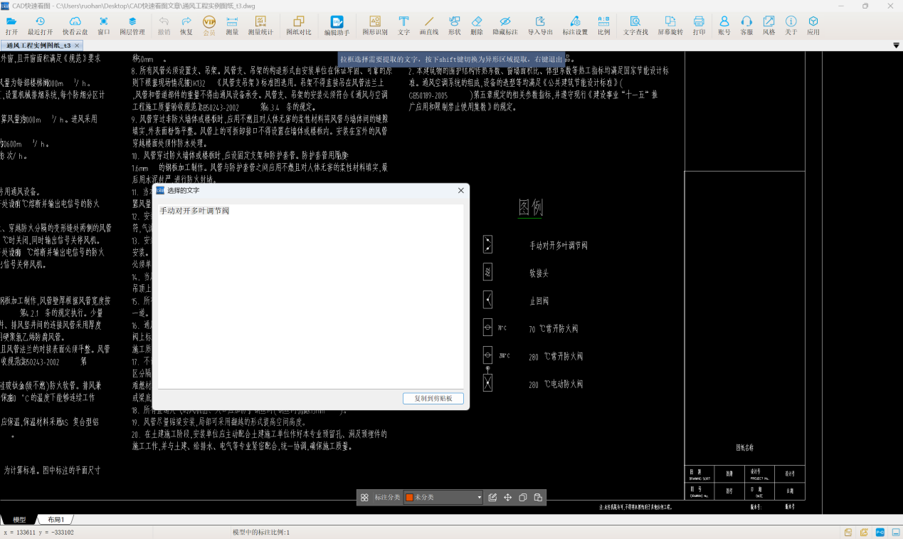 风阀计算工程量特别简单,按图纸数“个”就行!用CAD快速看图时,用“提取文字”和“编号文字”功能,点点图就能轻松数清楚有多少个,特别方便。